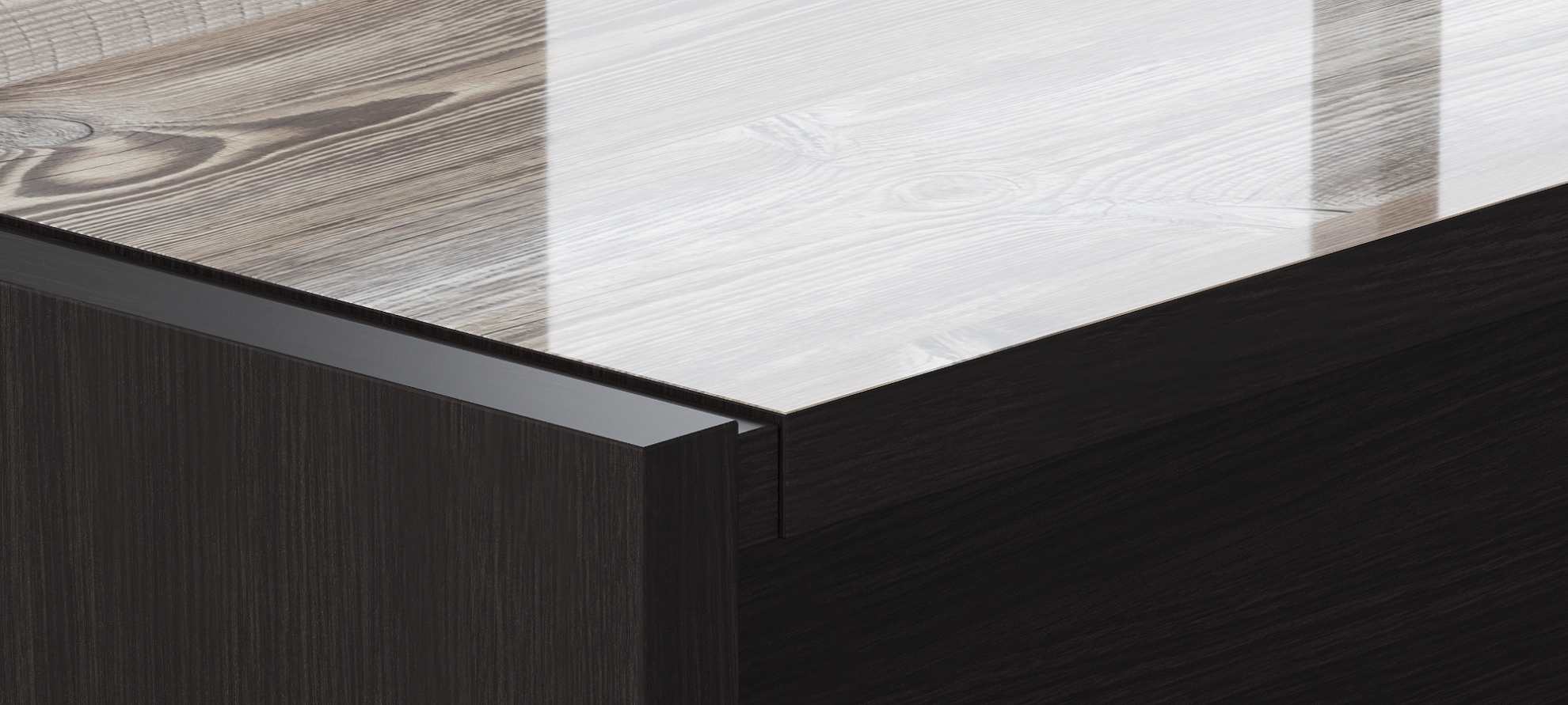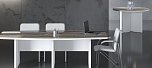 Современный лакированный кабинет руководителя. Благородный блеск глянцевого покрытия и яркий рустикальный рисунок натурального дерева «Дуб Базель». Оригинальные боковые проставки столешниц и «парящие» топы. Солидная массивность и конструкционное совершенство. Это — достойное окружение для того, кто привык быть, а не казаться; блистать, а не блестеть. Это — MORRIS.