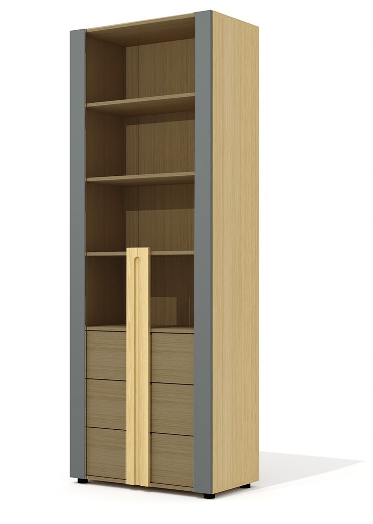 Высокий стеллаж со стеклянными дверьми и боксом Rem-46 + Rem-03.2 + Rem-52