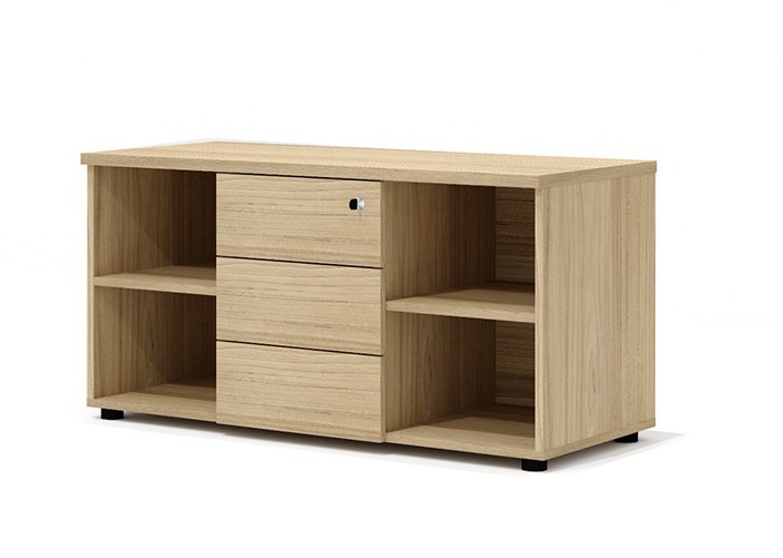 На нашей выставке, на Океанском проспекте, представлен прямой широкий стол в цвете швейцарский вяз с металлической опорами в цвете «Черный матовый», который установлен на сервисную тумбу. Прямой стол в сочетании с сервисной тумбой соответствует эргономике. Необходимая для ежедневной работы тумба находится на расстоянии вытянутой руки, что считается наиболее удачным расположение мебели. Сервисная тумба это вместительная и удобная тумба для вашего офиса. Используется для хранения офисных принадлежностей и бумаг, оргтехники.