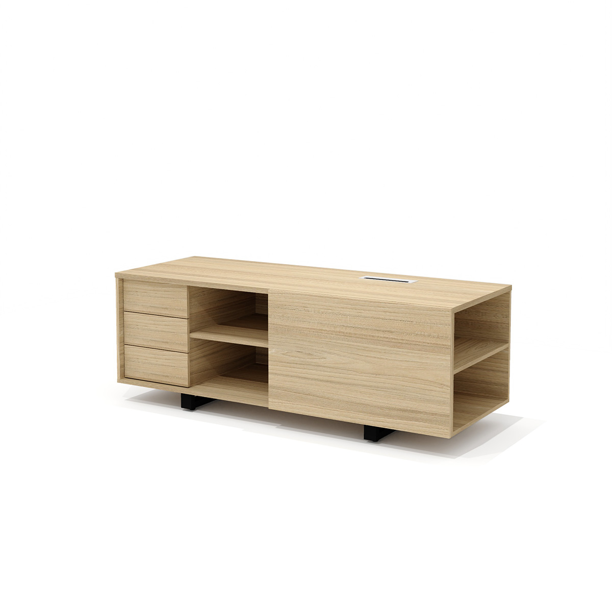 Кабинет руководителя Рио Директ современный и эргономичный. В нём солидность сочетается с легкостью, а благородные древесные текстуры подчеркиваются матовым металлом.