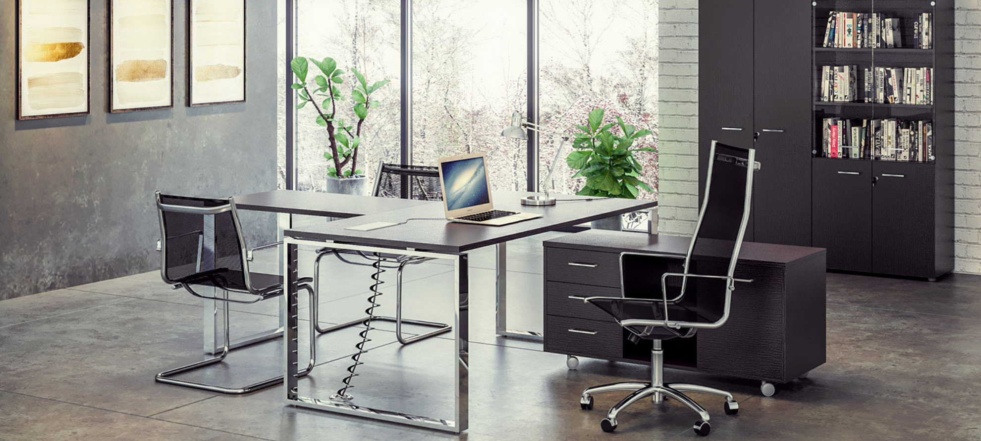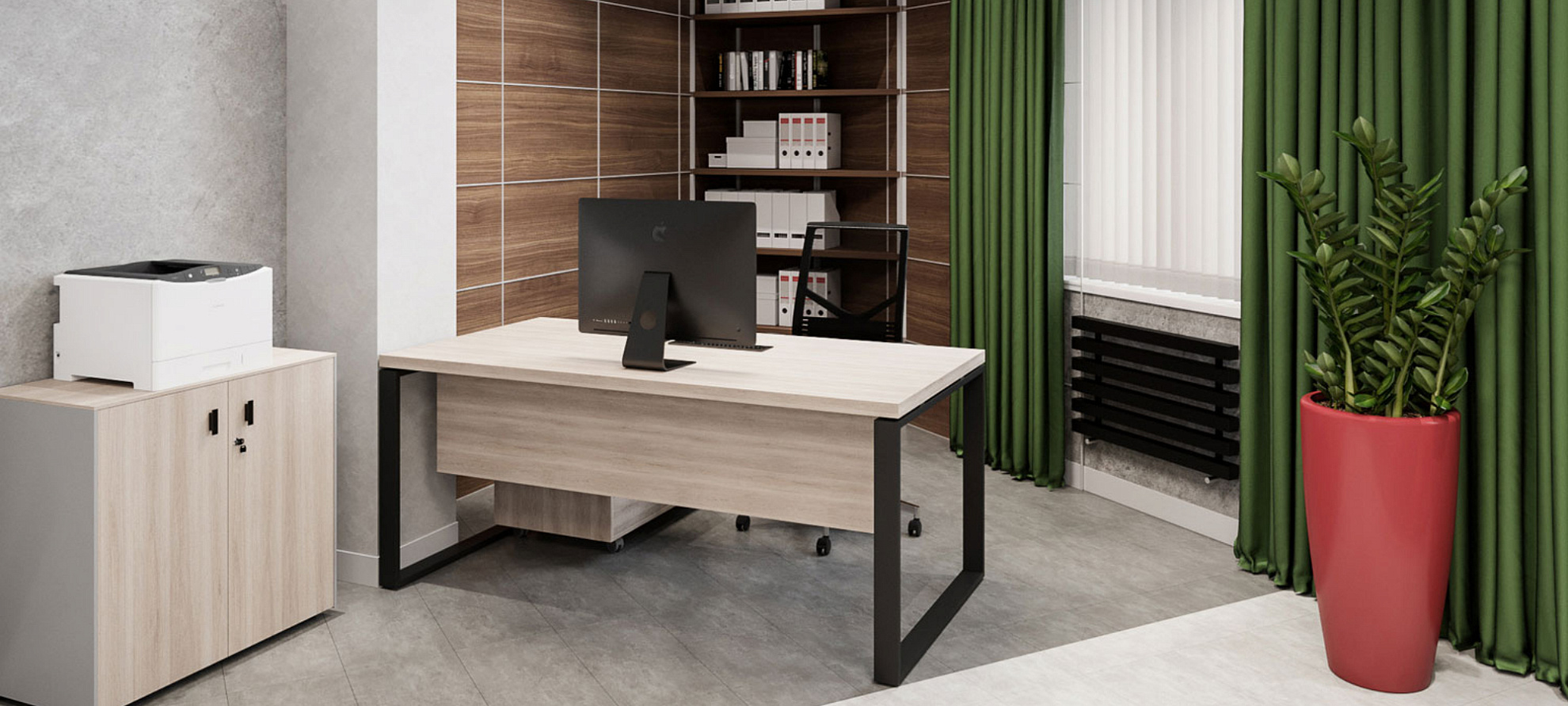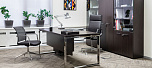 Современный дизайн кабинета в сочетании с классическим натуральным цветом дерева придаст деловой вид вашему офису. Широкий выбор шкафов и несколько вариантов столов для переговоров делают этот кабинет универсальным.