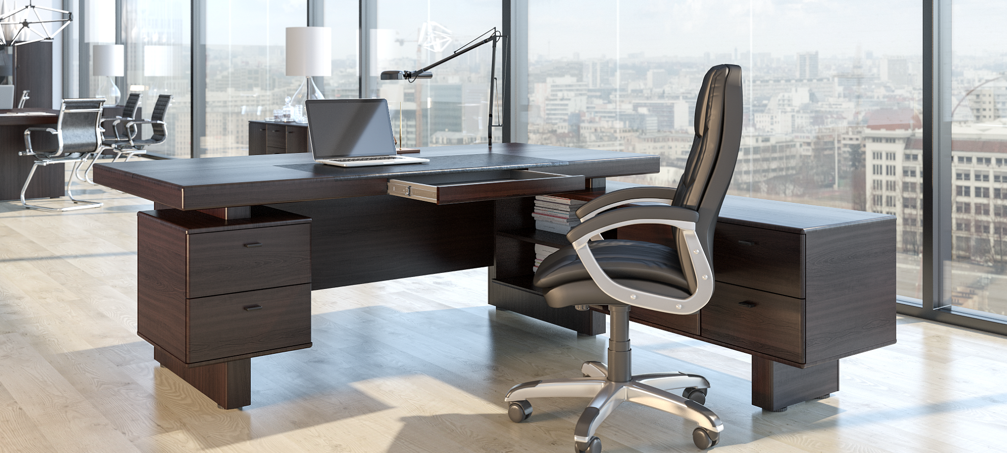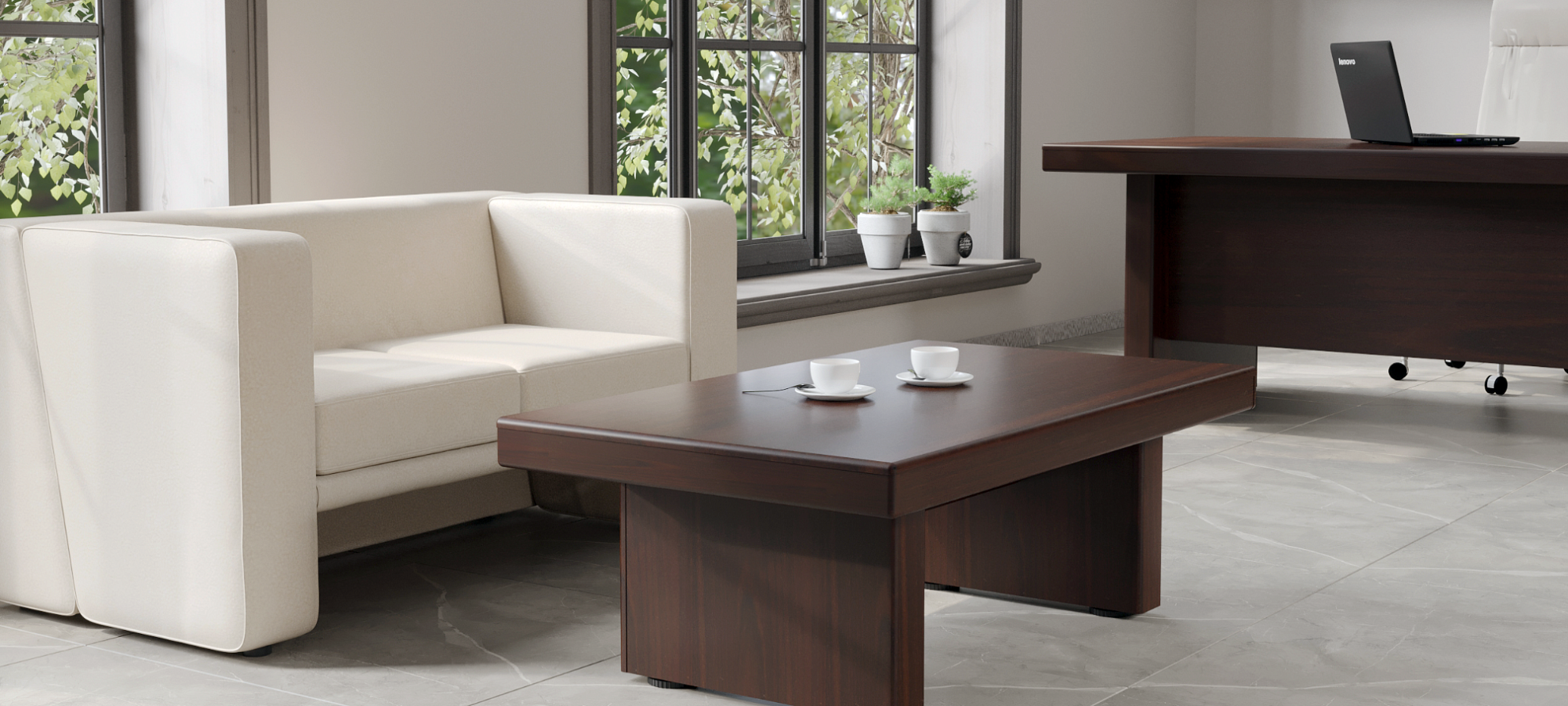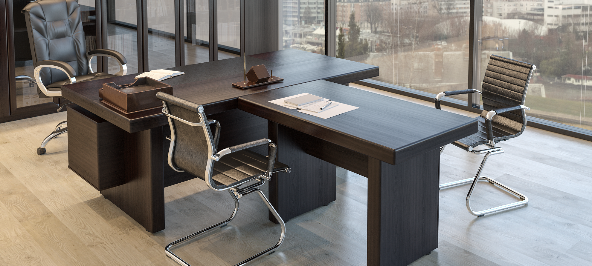 Мебель выполнена из плиты МДФ, облицованной вакуумным методом термопластичной ПВХ-пленкой, и из ЛДСП. Столешницы столов и брифинга имеют толщину 76 мм, что достигается декоративной обкладкой торцов. Опоры столов и брифинга, а также опора подвесной тумбы SD-31 имеют толщину 86 мм.