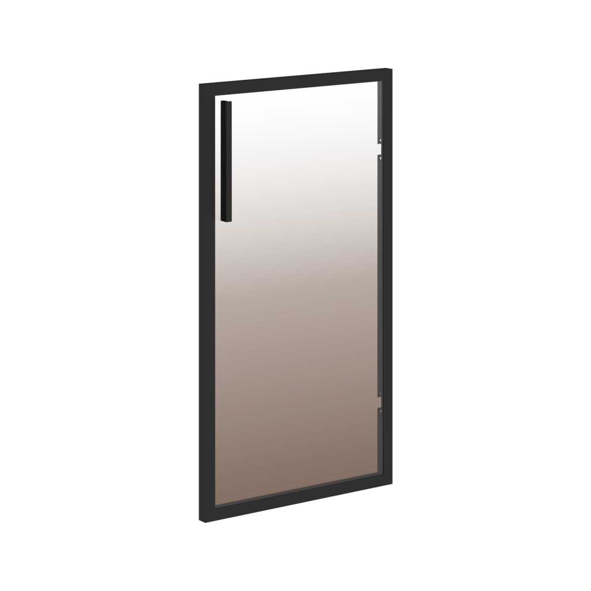 Стеклянная дверь в металлической раме из профиля 20х20. Стекло т.4мм, цвет - Тонированная бронза серая. Цвет рамы и ручки - Бронза браш, Черный матовый. Двери необходимо доукомплектовывать ручками VRS 8170 320/330.