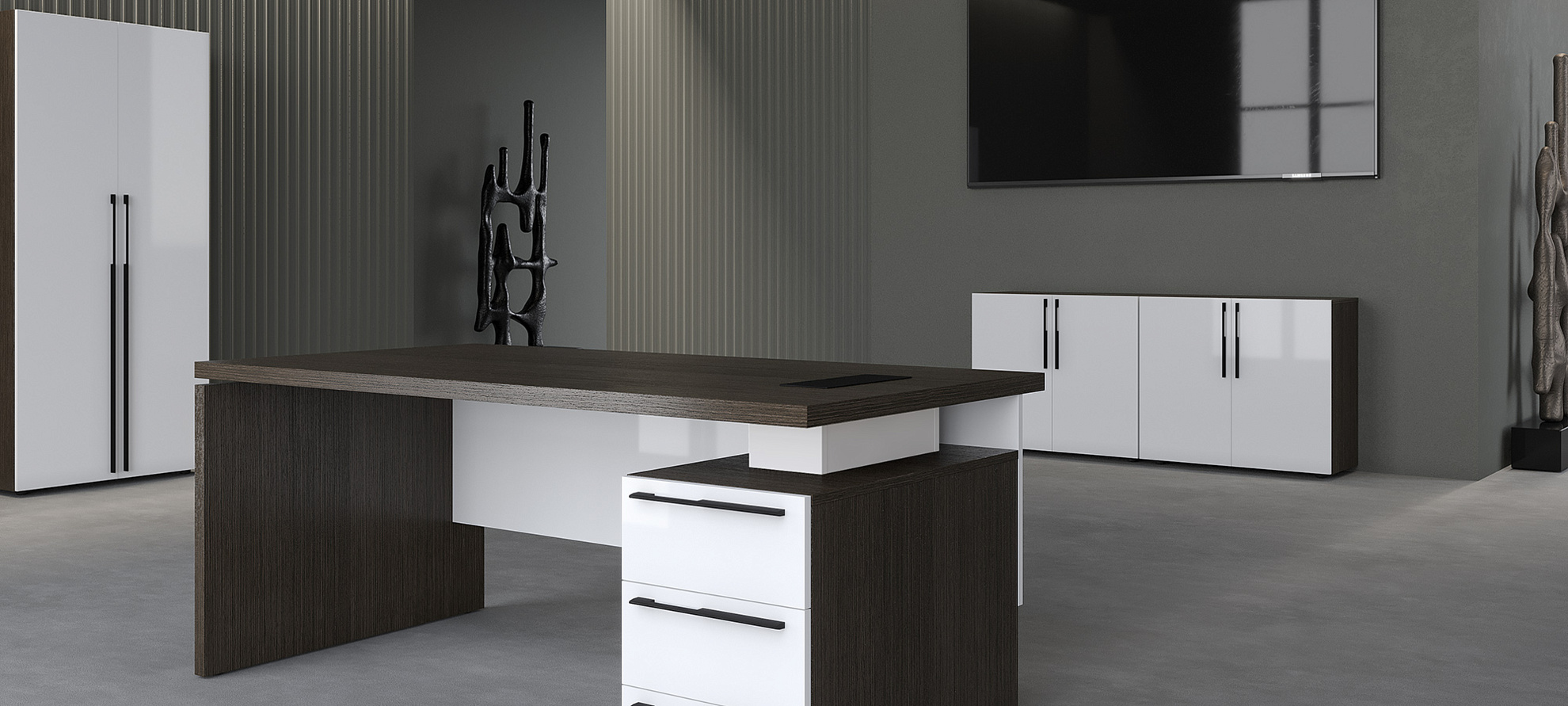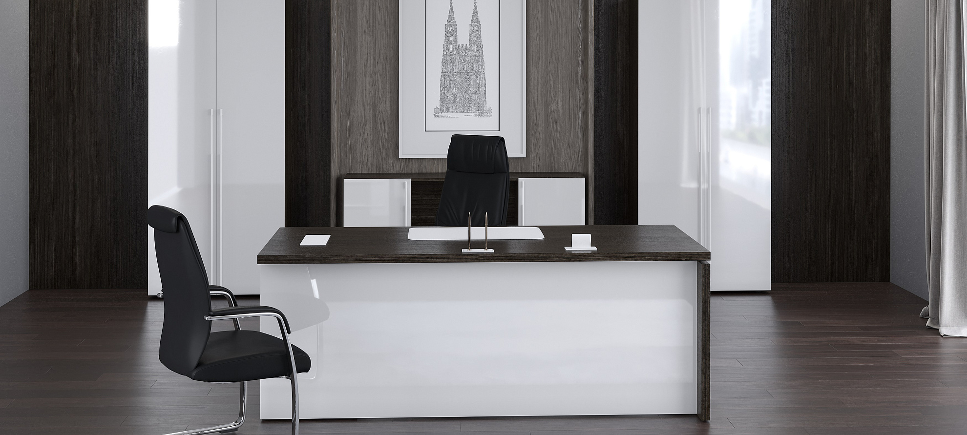 Цвет характеристик : Дуб Мореный/Белый глянец