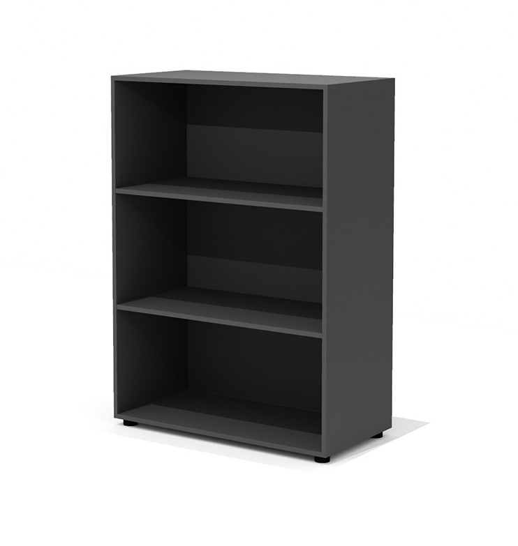 Корпус стеллажа (включая заднюю стенку) выполнен из ЛДСП цвета «антрацит». Торцы изделия обработаны прочной ПВХ-кромкой толщиной 0.5 мм. Внутреннее пространство стеллажа оснащена двумя стационарными полками. Для нивелирования неровностей пола стеллаж установлен на регулируемые по высоте опоры. Стеллаж может быть закрыт распашными фасадами и дополнен декоративным топом и боковыми панелями, выполненными из шпонированного МДФ.