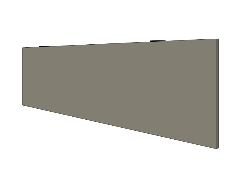 Подвесной декоративный траверс для стола выполнен из плиты МДФ толщиной 16 мм, облицованной шпоном, и покрыт лаком, нанесенным по технологии ’открытые поры’. Фиксация траверса к нижней плоскости столешницы производится с использованием пары металлических кронштейнов скрытого монтажа, входящих в состав изделия.