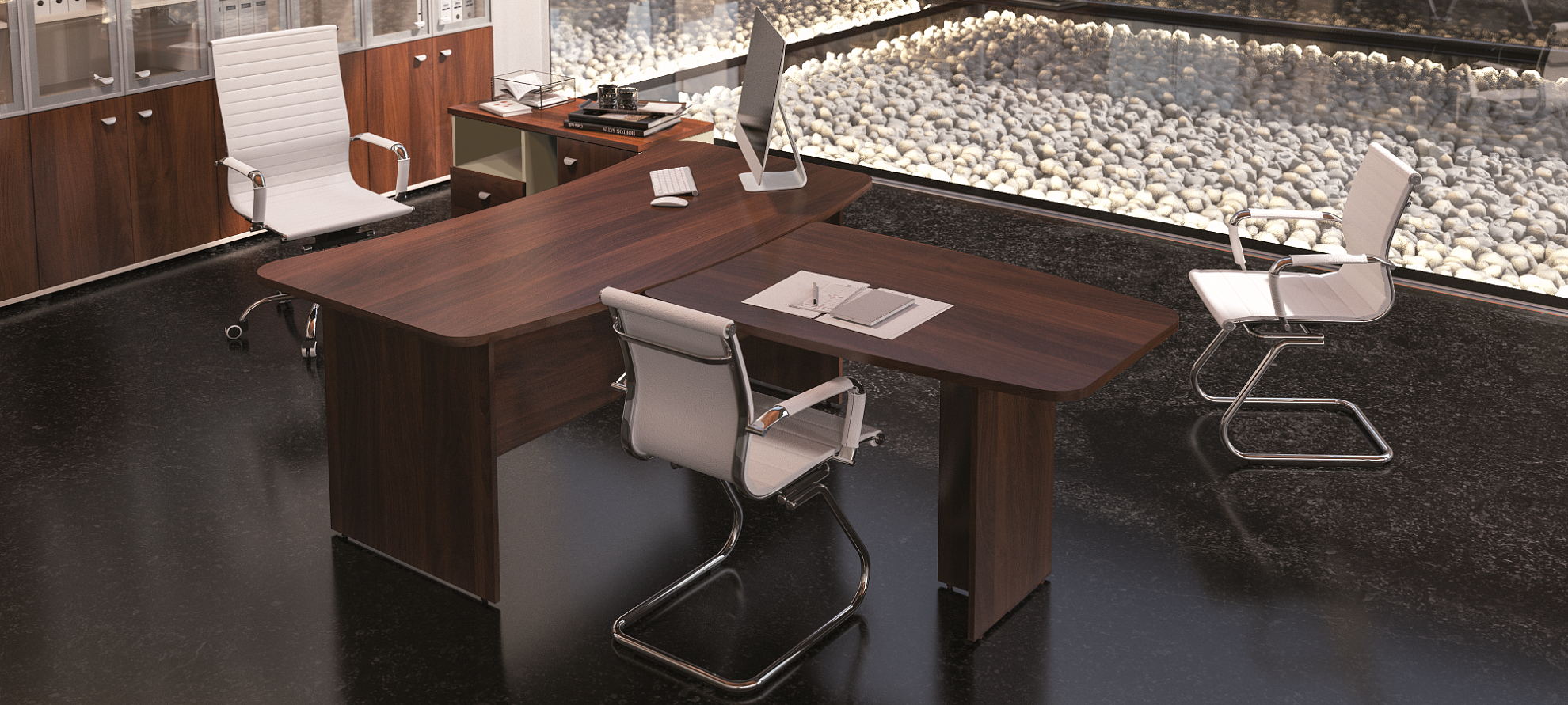 Коллекция «Gamma | Direct» является одним из самых лаконичных решений для кабинета руководителя. Стол с эргономичной столешницей, приставки и брифинги позволяют формировать рабочее пространство в соответствии с индивидуальными требованиями руководителя, обеспечивая комфортные условия для эффективной работы.