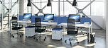 - Возможность создания различных рабочих зон: индивидуальные столы, многоместные станции и комбинированные конфигурации.