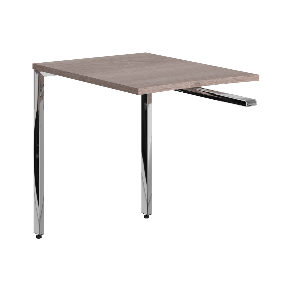 Столешница из ЛДСП т. 25мм c кромкой ПВХ т. 2мм. Опоры металлокаркаса П-образной формы из полированной нержавеющей стали, труба 60х30х1,5мм с регулировкой внизу. Комплектуется одной траверсой, цвет краски - хром.