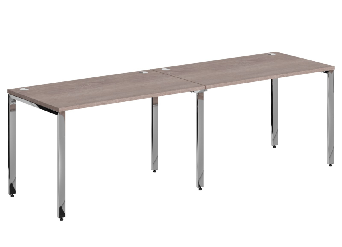 Столешница из ЛДСП т. 25мм c кромкой ПВХ т. 2мм. Опоры металлокаркаса П-образной формы из полированной нержавеющей стали, труба 60х30х1,5мм с регулировкой внизу. Каждая столешница комплектуется двумя траверсами, цвет краски - хром.