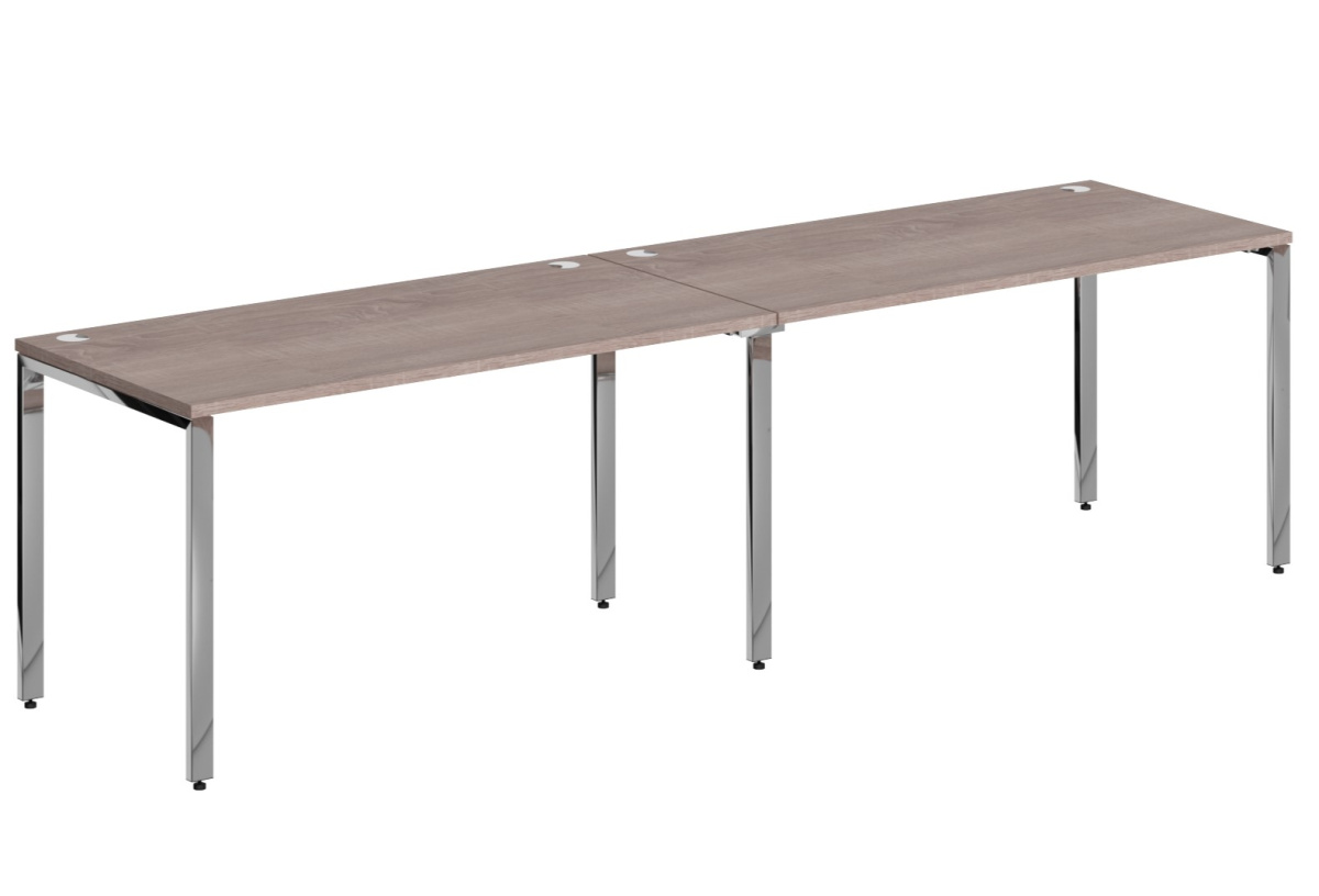 Столешница из ЛДСП т. 25мм c кромкой ПВХ т. 2мм. Опоры металлокаркаса П-образной формы из полированной нержавеющей стали, труба 60х30х1,5мм с регулировкой внизу. Каждая столешница комплектуется двумя траверсами, цвет краски - хром.