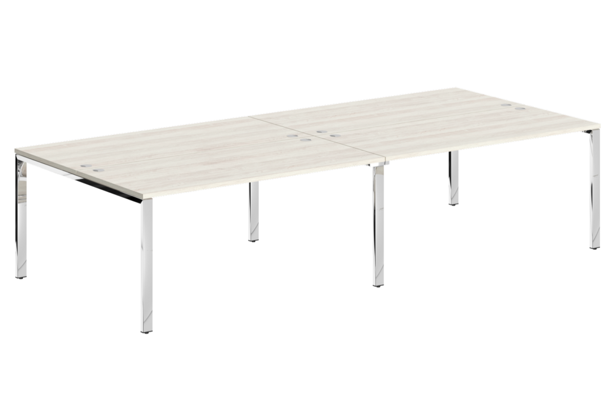 Столешница из ЛДСП т. 25мм c кромкой ПВХ т. 2мм. Опоры металлокаркаса П-образной формы из полированной нержавеющей стали, труба 60х30х1,5мм с регулировкой внизу. Каждая столешница комплектуется двумя траверсами, цвет краски - хром.